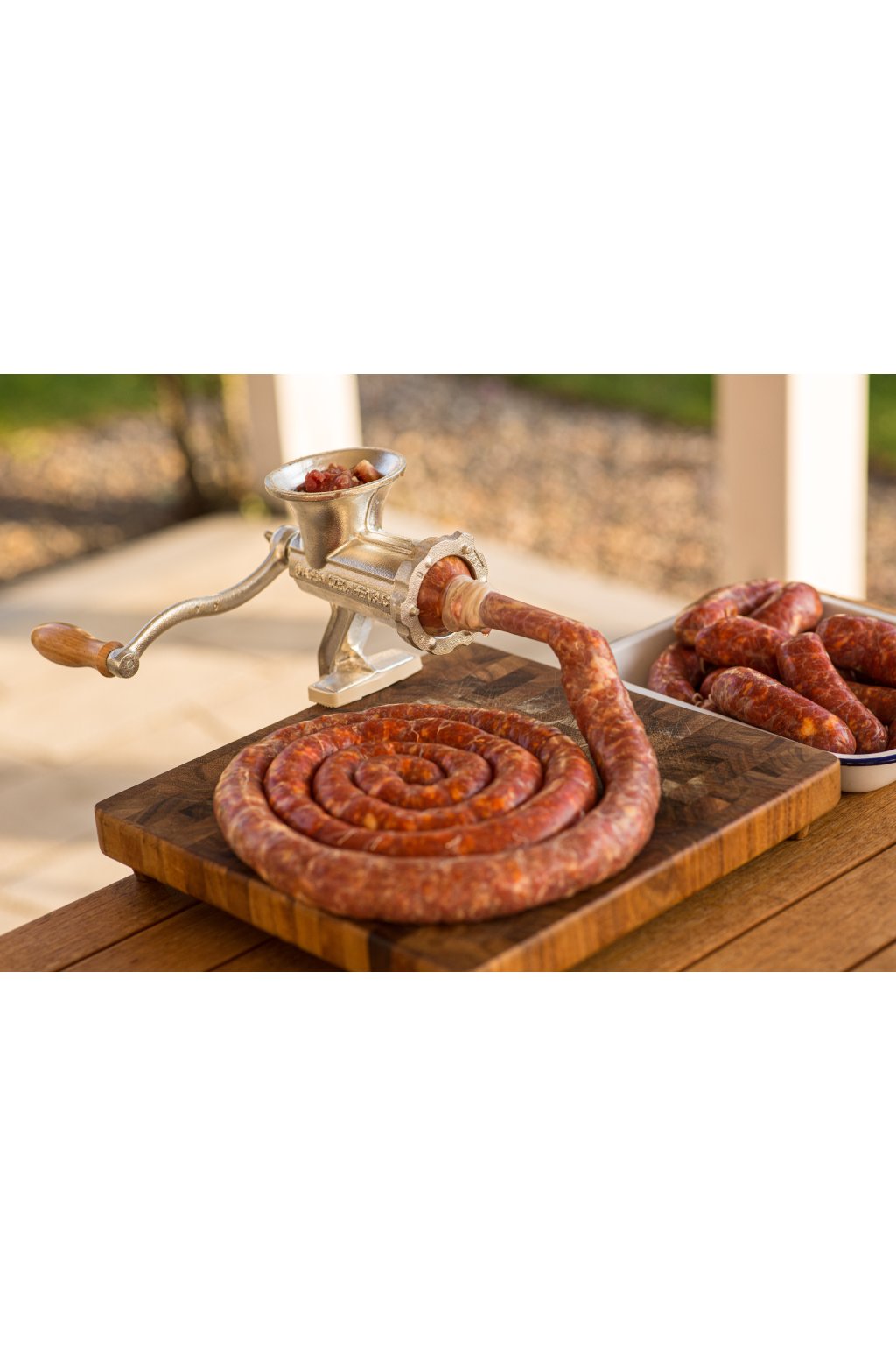 Für jeden, der zu Hause eine komplette Ausstattung zum Mahlen von Fleisch, zur Zubereitung von Pasteten, Hackbraten, Würsten, Blut- und Leberwürsten sowie hausgemachten Salamis haben möchte. Dank der verschiedenen Schneidscheiben erhalten Sie präzise Kontrolle über die Feinheit des Mahlens, und mit der Fülltülle können Sie Ihre eigenen Därme direkt befüllen.