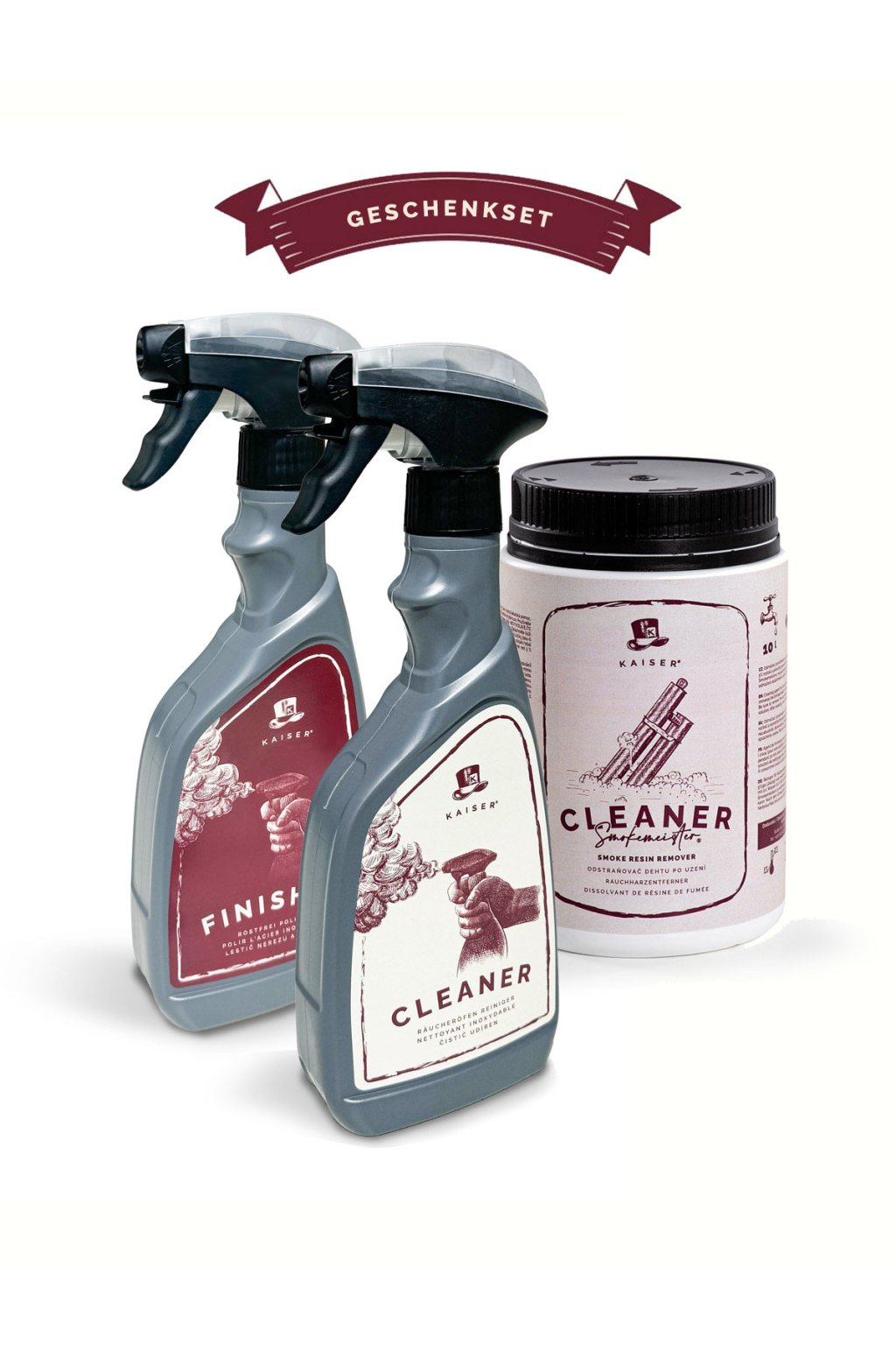 Dieses Trio arbeitet wie ein eingespieltes Orchester: Cleaner löst selbst hartnäckige Angebranntes, der Smokemeister Cleaner kümmert sich um die „Innereien“ Ihres Rauchgenerators und der Finisher verleiht dem Ganzen am Ende so viel Glanz, dass selbst ein Schornsteinfeger zufrieden nicken würde.