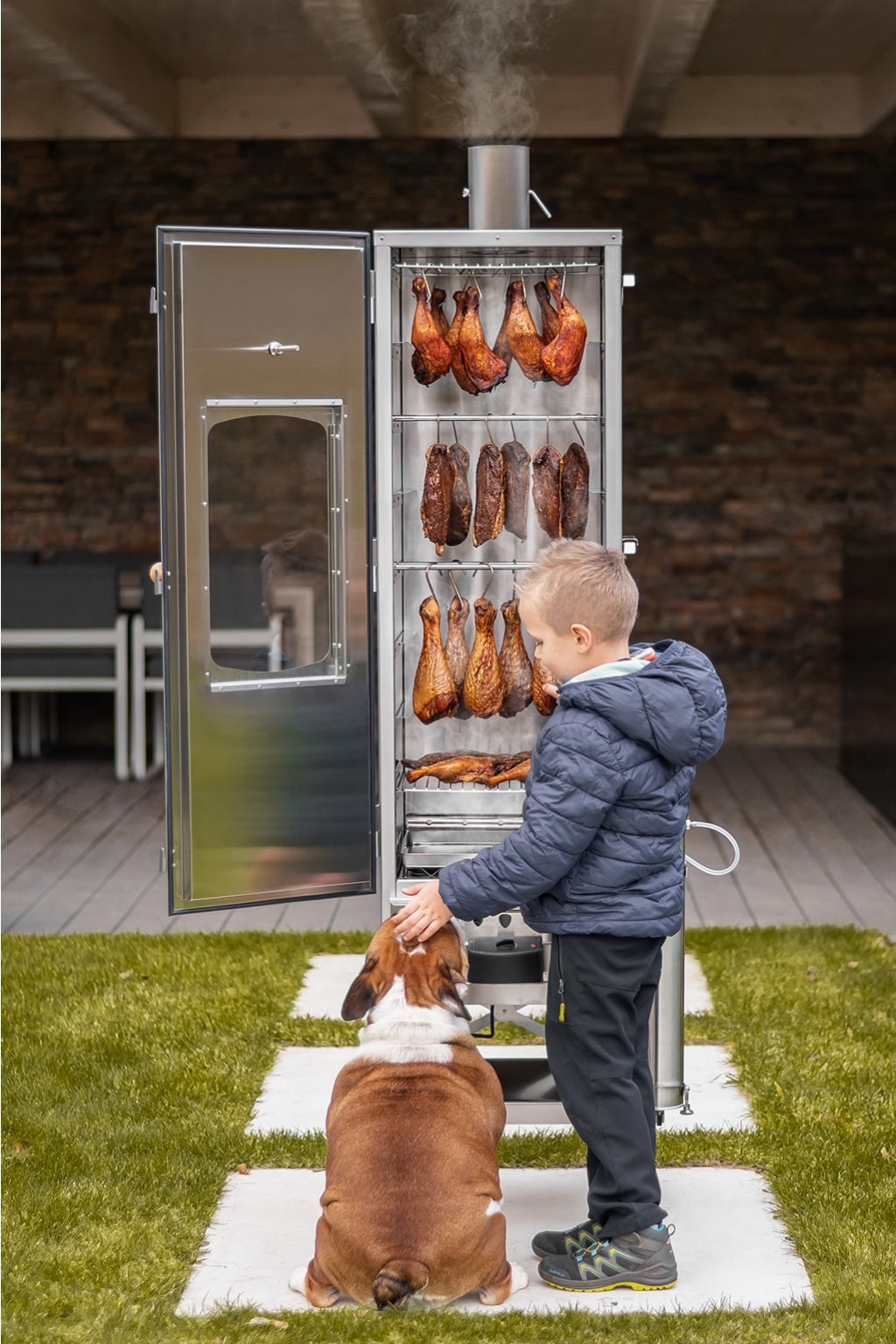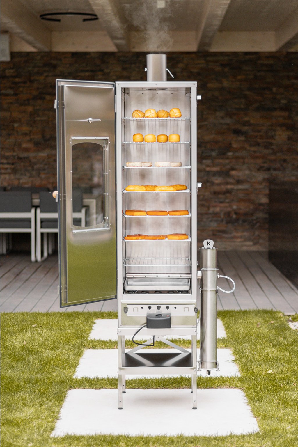 Dank der doppelwandig isolierten Konstruktion können Sie den Räucherschrank übers ganze Jahr nutzen. Er ist ideal für den Garten, eine Terrasse, oder Sie können den RÄUCHERSCHRANK an einen externen Rauchabzug anschliessen.