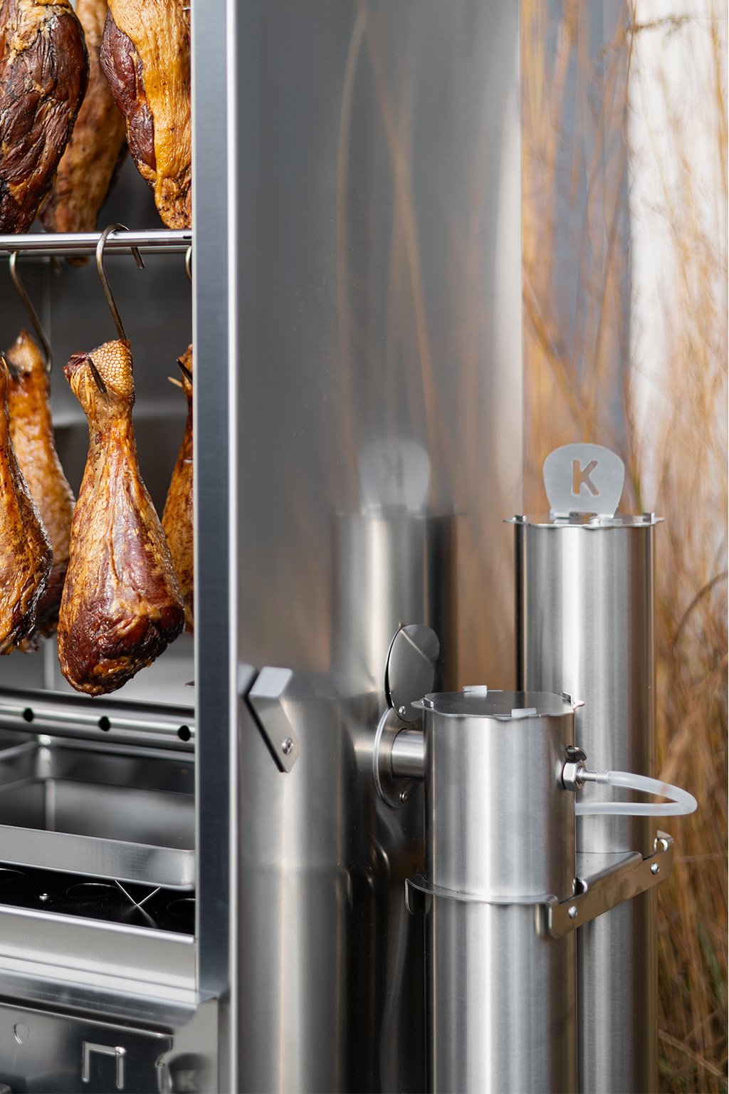 Die filterwalze mit Katalysator filtert einen großen Teil des Teers heraus und kühlt den Rauch gleichzeitig auf ehrliche 28°C, sodass der räucherschrank auch zum Kalträuchern geeignet ist.