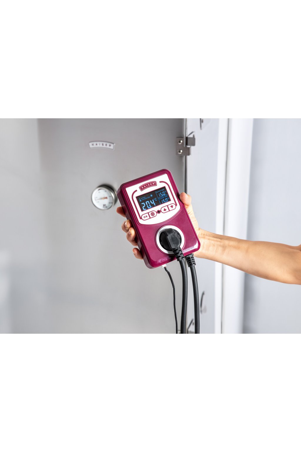 DER DIGITALE KAISER-THERMOSTAT GARANTIERT EINE KONSTANTE TEMPERATUR IM RÄUCHEROFEN UND ELIMINIERT HEISSE SCHWANKUNGEN – SO TROCKNEN SIE DAS FLEISCH NICHT AUS UND VERBRENNEN ES AUCH NICHT.
