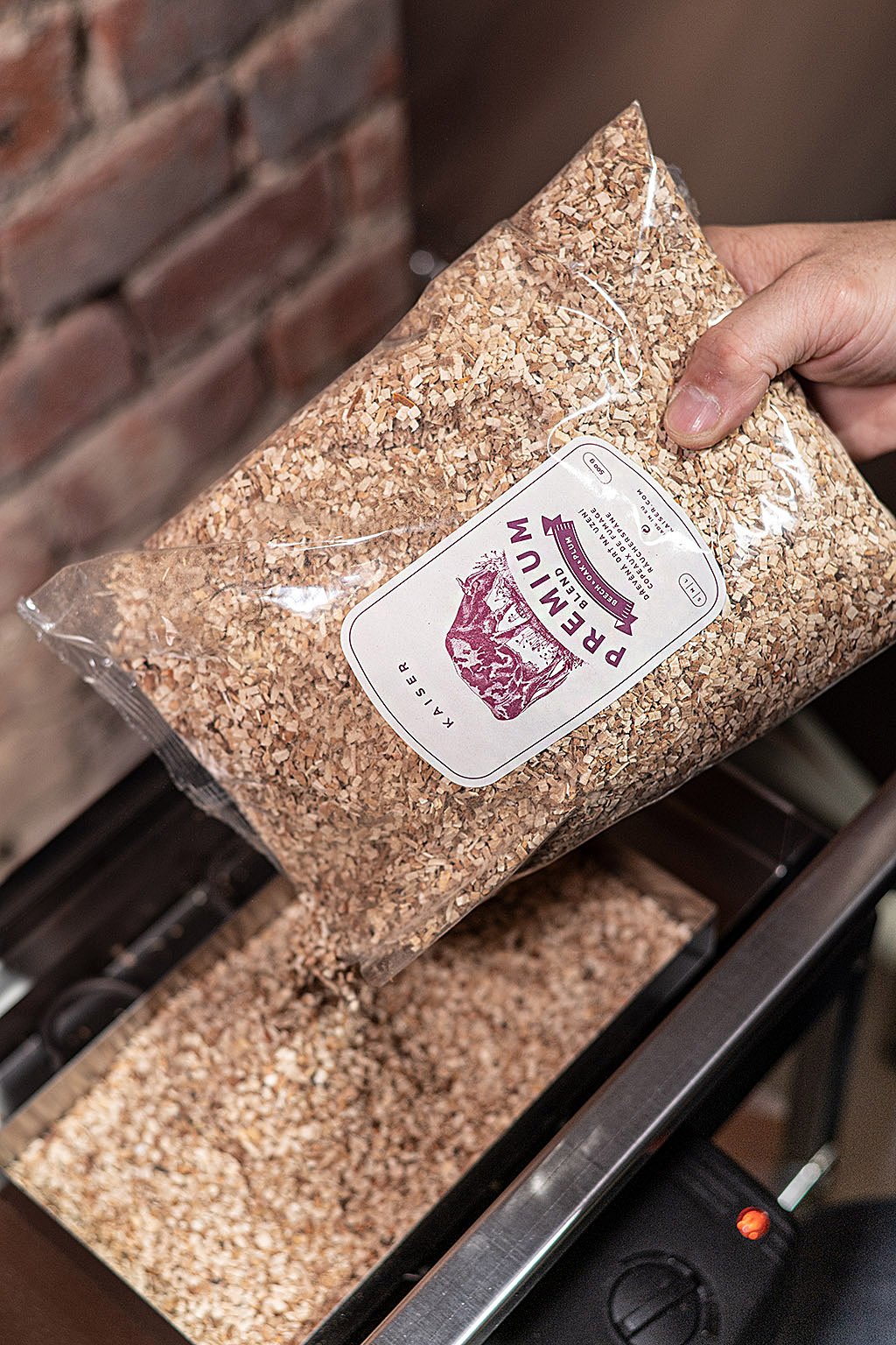 Jeder Beutel hat sein eigenes Aroma – perfekt abgestimmt auf die jeweilige Fleischsorte. Einfach die Chips wechseln je nachdem, was gerade in der Räucherkammer hängt, und schon schmeckt das Ergebnis „ausgerechnet wie vom alten Meister“.