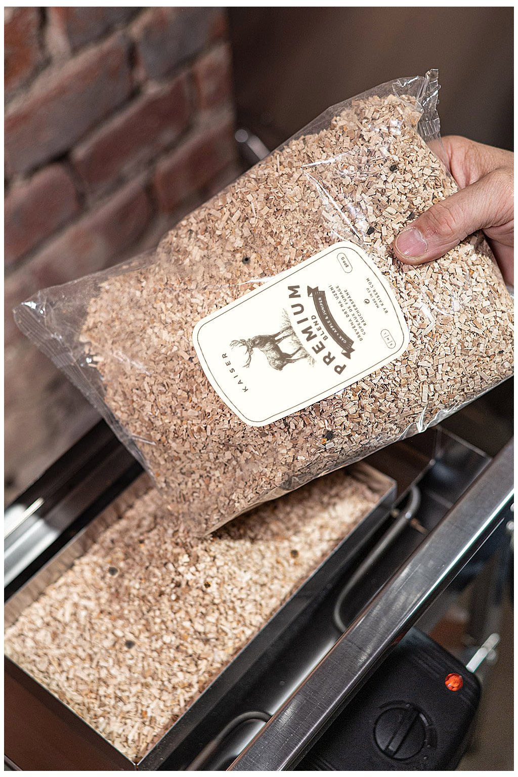 Die Grobkörnigkeit von 1-3 mm ist für elektrische Räucheröfen gedacht und eine Packung reicht für etwa 6 Stunden Räuchern. Falls Sie mit Holz in der Feuerstelle heizen oder unseren externen Raucherzeuger SMOKEMEISTER® verwenden, empfehle ich die 6-13 mm Fraktion.